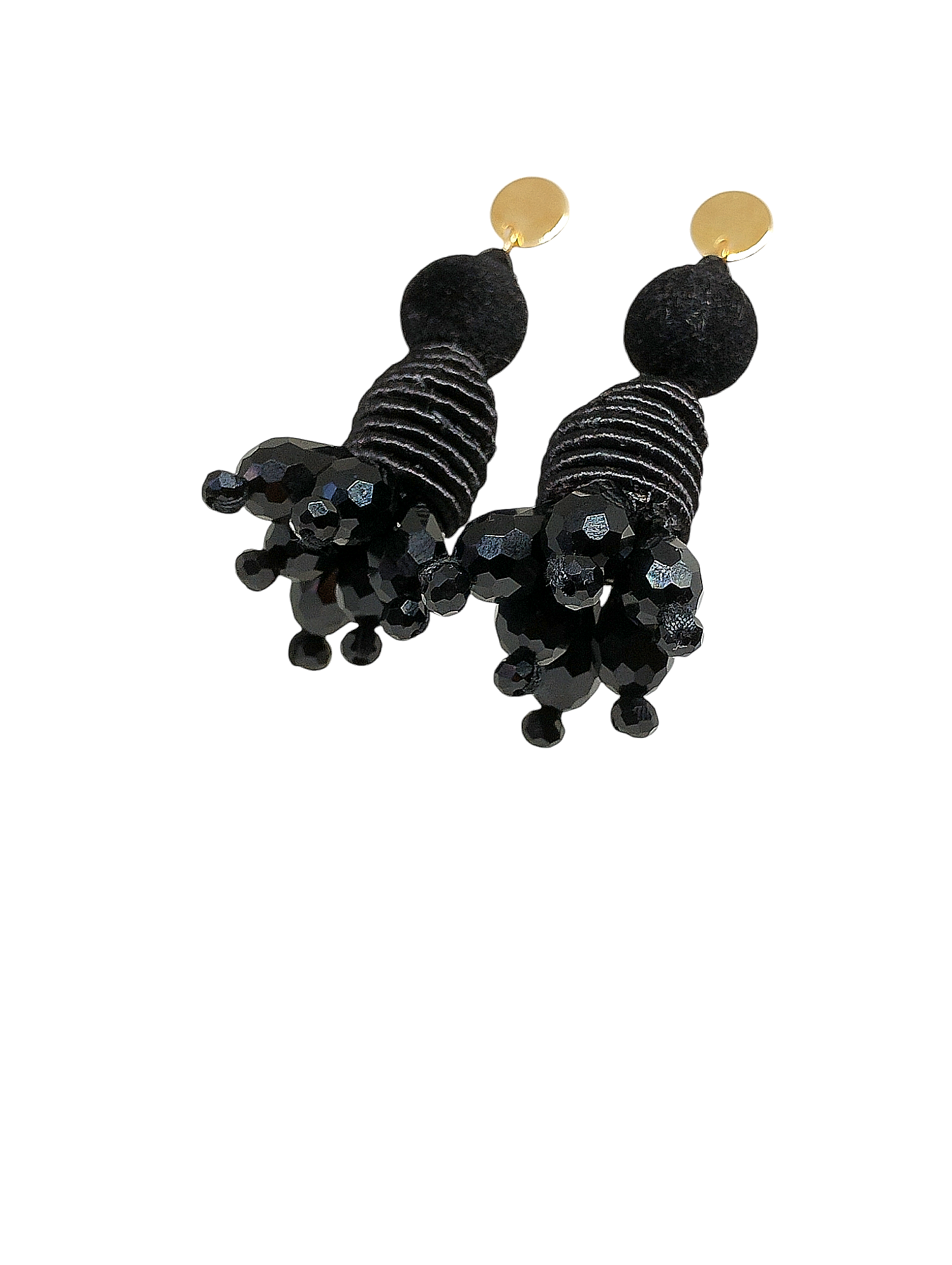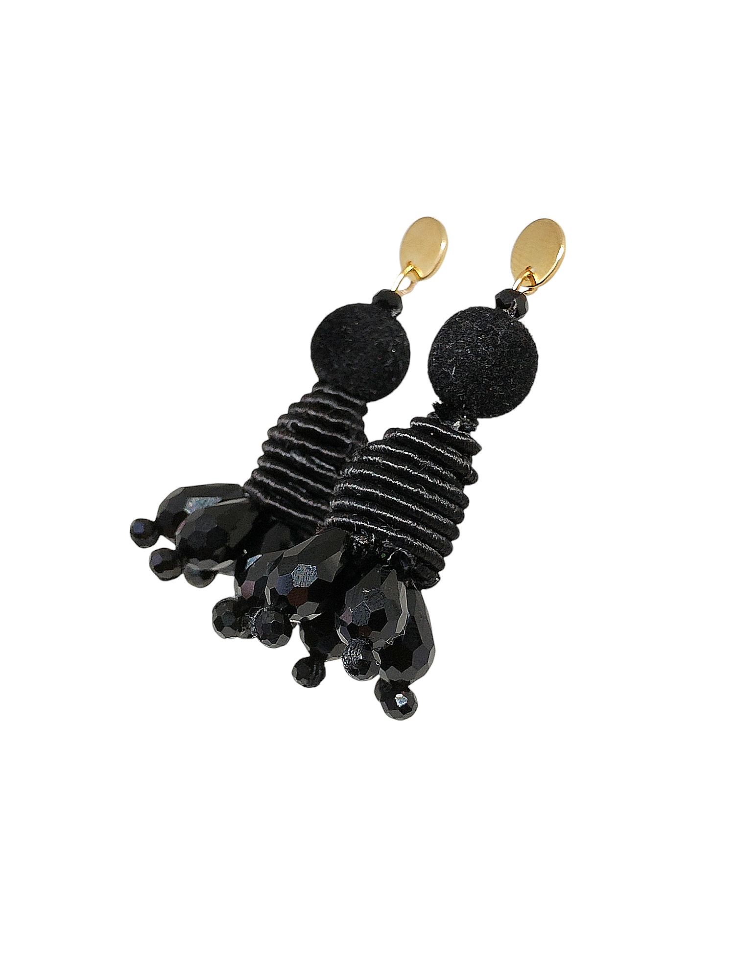 Inspirándome en los machos que rematan los trajes de luces de los toreros nacen estos pendientes de pasamanería y cristal. Muy elegantes y cómodos.